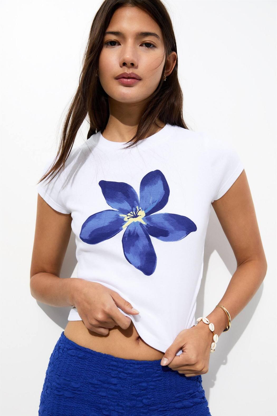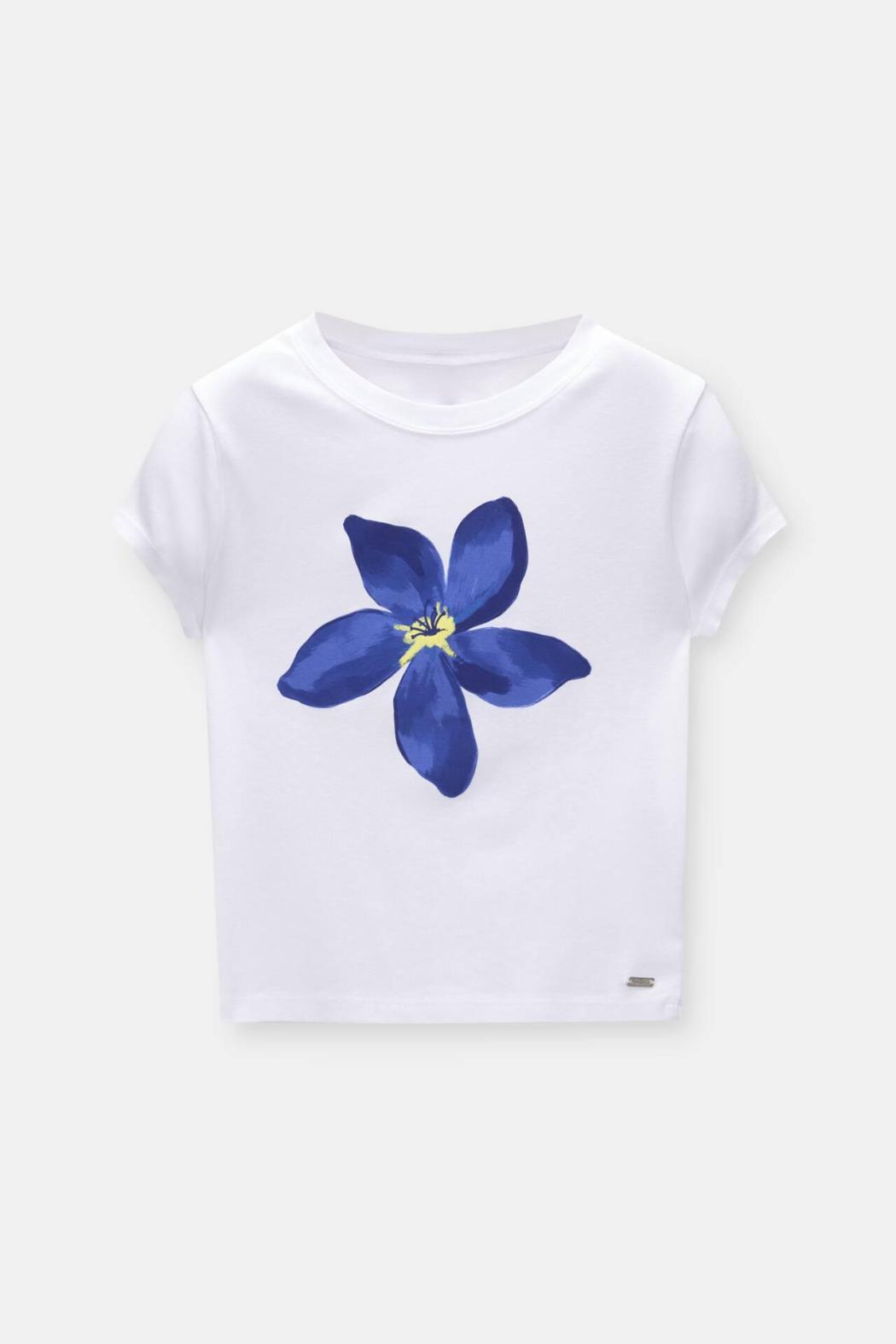 Short Sleeve T-Shirt With A Crew Neck And Large Flower Print Detail. Made Of 100% Cotton. Composición
