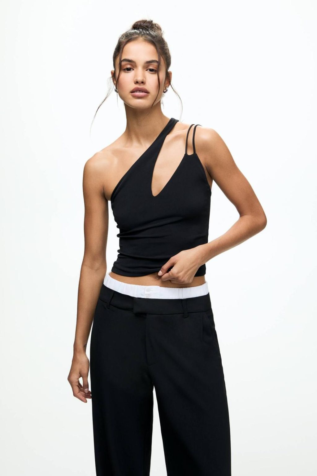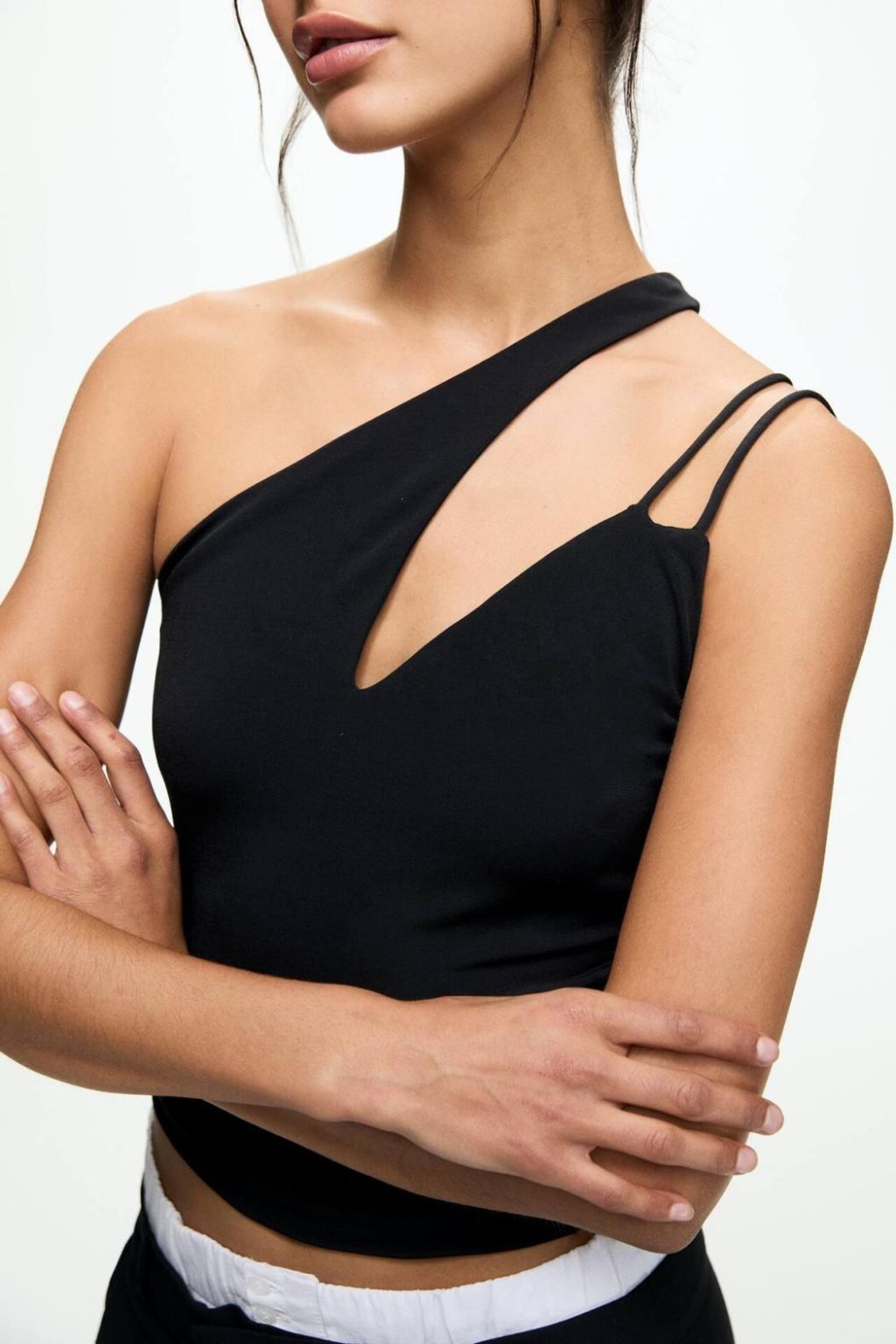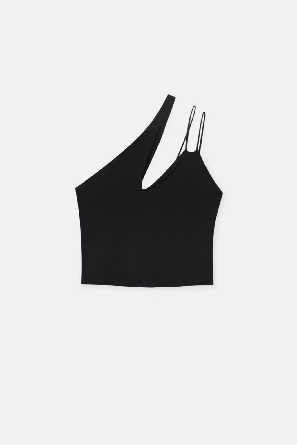 Asymmetric Top With Triple Strap Detail. Made Of Slightly Stretchy Fabric.