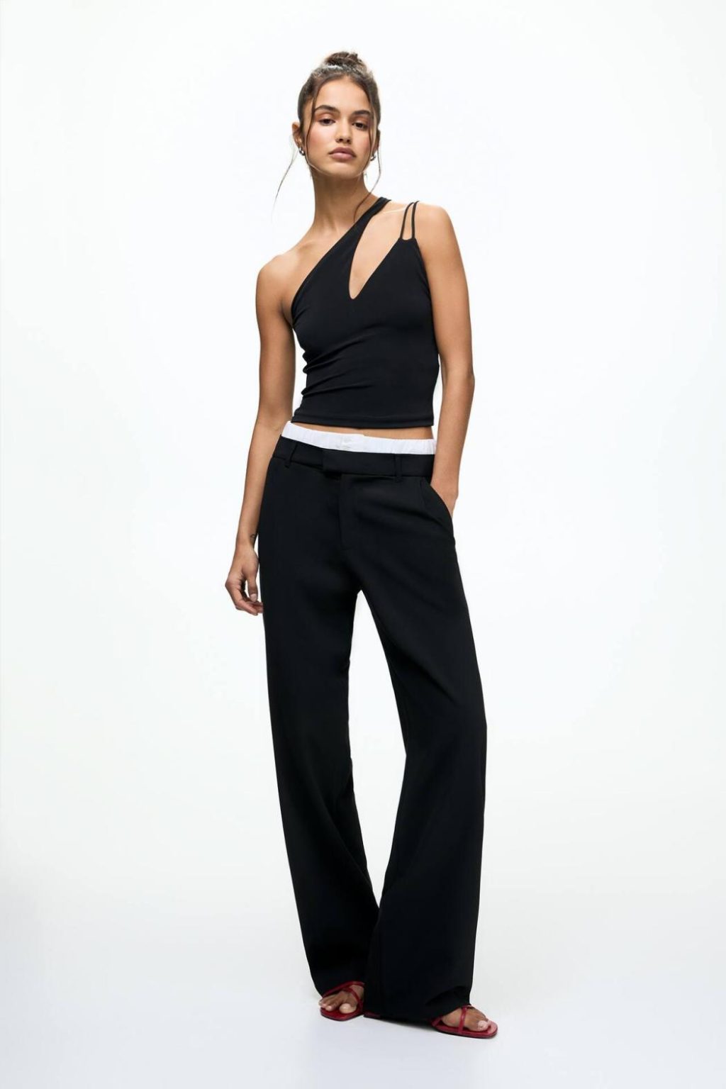 Asymmetric Top With Triple Strap Detail. Made Of Slightly Stretchy Fabric. Composición