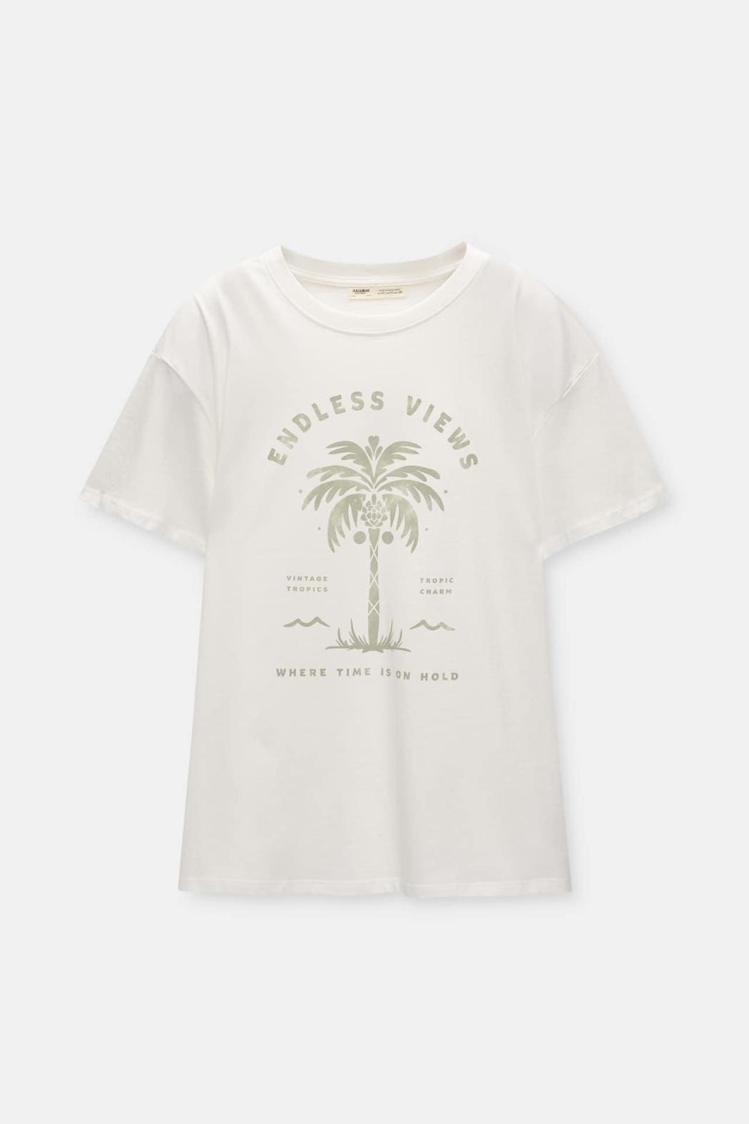 Short Sleeve T-Shirt With A Palm Tree Graphic Detail. Made Of 100% Cotton.